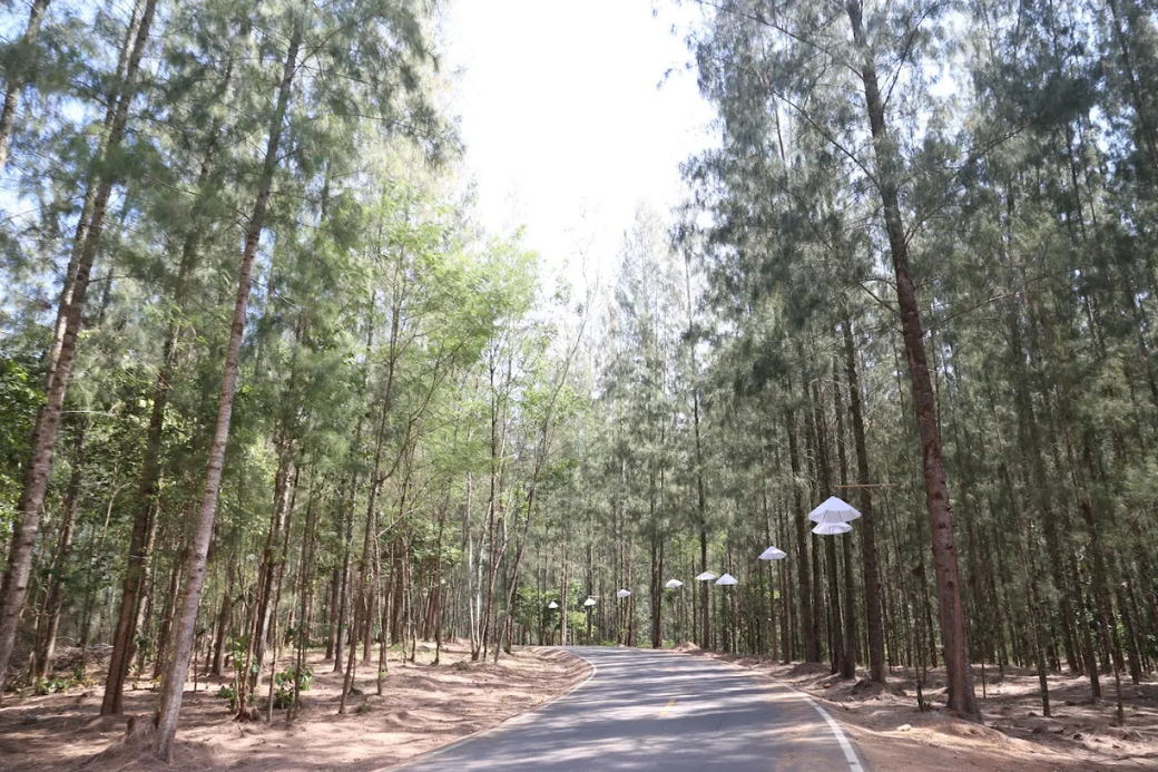 ฉันขับรถลงใต้มาตามถนนเพชรเกษม แล้วเลี้ยวเข้าสู่ถนนเส้นเล็กๆ ของหมู่บ้านในเขตทับสะแก ตามพิกัดที่ปักหมุดไว้ที่ "ป่าสนบ้านเหมืองแร่" ซึ่งต้องขับเข้าไปอีกสักระยะหนึ่ง แต่ทันทีที่ฉันขับรถเข้าสู่เขตป่าสน...ฉันก็รู้สึกเหมือนได้หลุดเข้ามาอยู่ในโลกอีกใบเลยค่ะ!