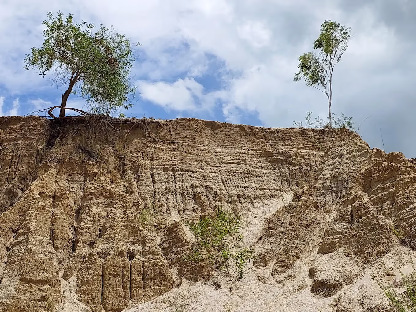นอกจากป่าสนแล้ว ฉันก็ไม่พลาดที่จะแวะไปที่ "แกรนด์แคนยอนเหมืองแร่" ที่อยู่ไม่ไกลกันด้วยค่ะ เป็นเนินทรายและร่องรอยการทำเหมืองแร่เก่า ที่ถูกน้ำกัดเซาะจนเกิดเป็นกำแพงดินสูงใหญ่แปลกตา ให้ฟีลลิ่งที่แตกต่างจากป่าสนอย่างสิ้นเชิง สามารถแวะไปเก็บภาพแนวเท่ๆ แนวสตรีทต่อได้เลย