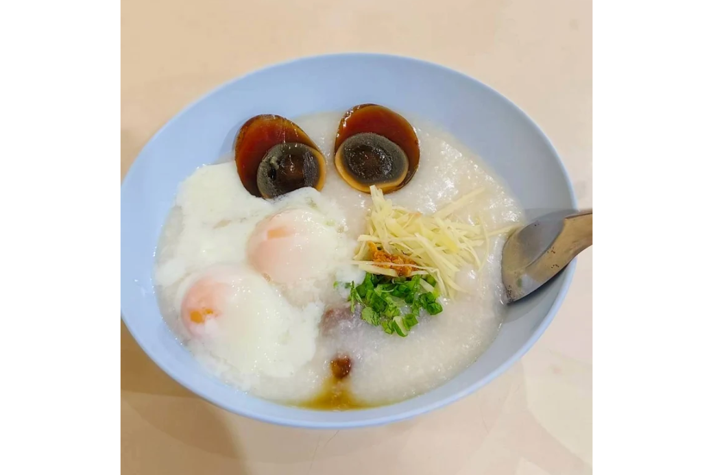 มุมโต๊ะอาหาร: ถ่ายภาพรวมถ้วยโจ๊กของเรากับบรรยากาศร้านที่เรียบง่าย แต่เต็มไปด้วยความคึกคักยามเช้า ได้ฟีลลิ่งอาหารเช้าแบบ Local & Traditional ของประจวบฯ ค่ะ