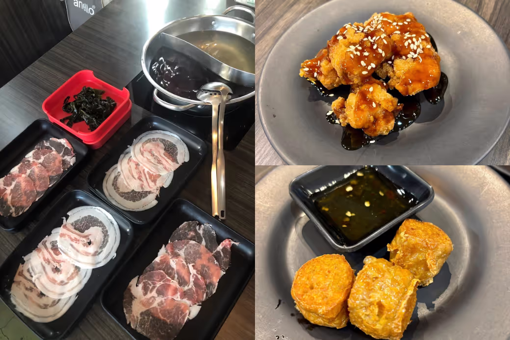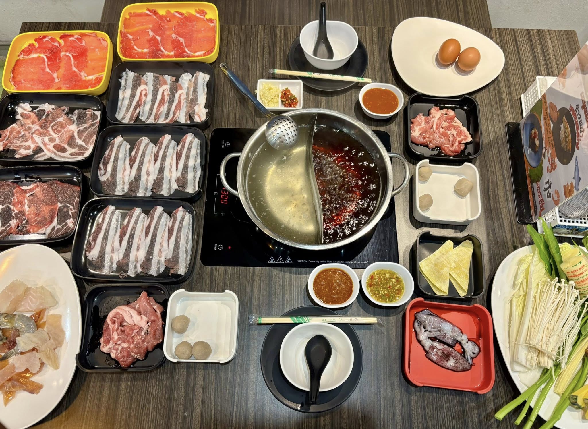 ทันทีที่นั่งลงและเลือก น้ำซุป การผจญภัยของรสชาติก็เริ่มต้นขึ้น เราเลือก น้ำดำ ตามคำแนะนำ และพบว่ามันอร่อยเข้มข้น หอมกรุ่นจริง ๆ และสำหรับสายซ่าอย่างเรา ก็ขอเพิ่ม น้ำซุปหม่าล่า รสจัดจ้านมาคู่กัน ความสุขที่แท้จริงอยู่ที่ ไลน์อาหาร ที่นี่มีวัตถุดิบให้เลือกเยอะมาก และที่ห้ามพลาดเลยคือ เนื้อน่องลาย ที่สไลด์มาอย่างดีจนแทบละลายในปาก ตามมาด้วย หมูสามชั้นสไลด์ และ ฟองเต้าหู้ ที่เป็นเมนูยอดนิยมจนต้องสั่งเพิ่มหลายรอบ การได้จุ่มเนื้อคุณภาพดีลงในน้ำซุปเข้มข้น แล้วตักขึ้นมาจิ้มน้ำจิ้มสูตรเด็ดของร้าน ถือเป็นช่วงเวลาที่ทำให้โลกหยุดหมุนไปชั่วขณะ