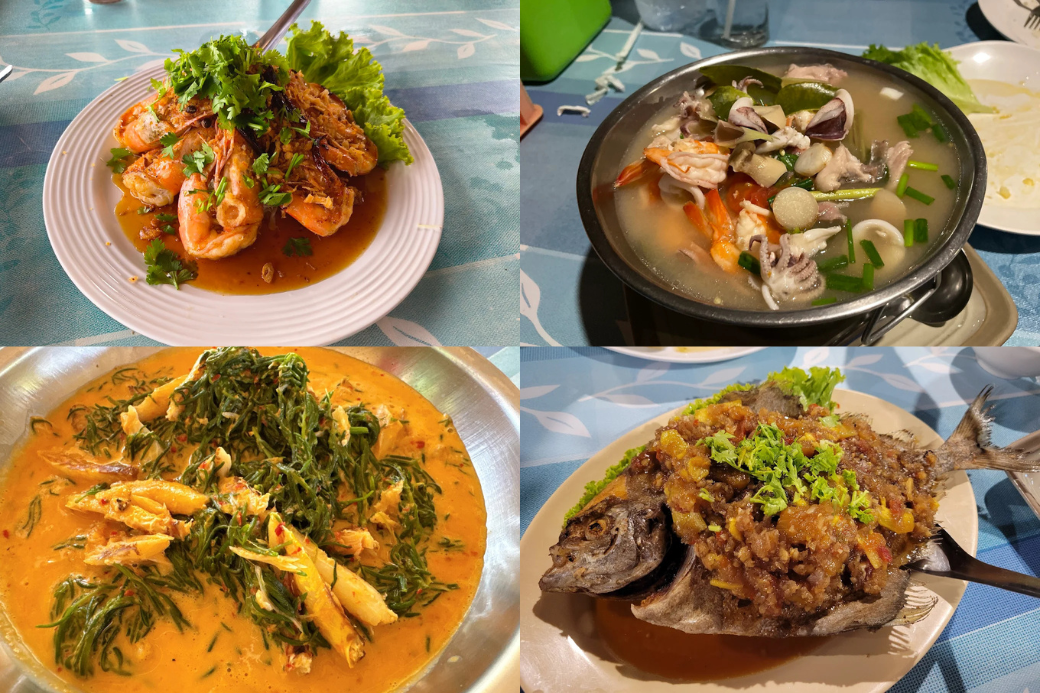 มื้ออาหารที่ครัวชมวาฬจึงเป็นมื้อที่พิเศษกว่าที่ไหน ๆ เพราะวัตถุดิบทุกอย่างส่งตรงมาจากเรือประมงเล็ก ๆ ในชุมชน ทำให้มั่นใจได้ในความสดที่เหมือนเพิ่งยกขึ้นจากทะเลมาหมาด ๆ เมนูเด็ดที่ใครมาก็ต้องสั่งคือบรรดาอาหารพื้นบ้านรสจัดจ้าน ไม่ว่าจะเป็นแกงส้มพริกนกที่เผ็ดร้อนถึงใจ ปลากะพงทอดน้ำปลาที่กรอบนอกนุ่มใน หรือปูม้านึ่งเนื้อหวานฉ่ำที่สะท้อนถึงความอุดมสมบูรณ์ของอ่าวบ่อนอกได้อย่างดีเยี่ยม การได้นั่งทานอาหารรสเลิศภายใต้อาคารเปิดโล่งรับลมทะเล พร้อมกับฟังเรื่องเล่าเกี่ยวกับการอนุรักษ์และวิถีชีวิตของคนที่นี่ ทำให้มื้ออาหารธรรมดากลายเป็นช่วงเวลาที่ลึกซึ้งและน่าจดจำ