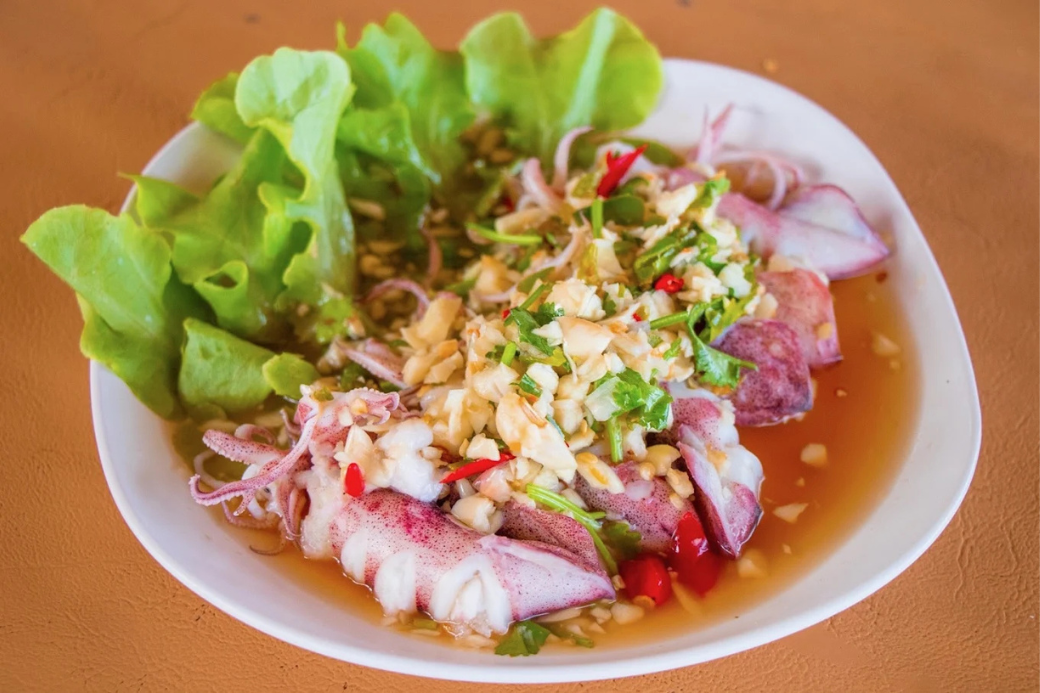 จานแรกที่มาถึงก็เรียกเสียงฮือฮาทันที คือ ปลาหมึกไข่นึ่งมะนาว หน้าตาคือแซ่บแบบไม่ต้องสืบ! น้ำซุปสีเขียวนวลที่ลอยหน้าด้วยพริกขี้หนูสวนซอยแบบไม่ยั้ง! พอชิมเข้าไปเท่านั้นแหละ...โอ๊ย! เปรี้ยว เผ็ด จัดจ้าน ถึงใจแบบไม่มีกั๊ก รสมะนาวสด ๆ กับความเผ็ดร้อนคือเข้ากันอย่างบ้าคลั่ง! แถมปลาหมึกก็สดเด้งมาก ๆ ไข่ปลาหมึก ก็แน่น ๆ เต็มทุกตัว จนคุณลุงถึงกับต้องซับเหงื่อแล้วบอกว่า "นี่แหละรสชาติอาหารใต้แท้!"