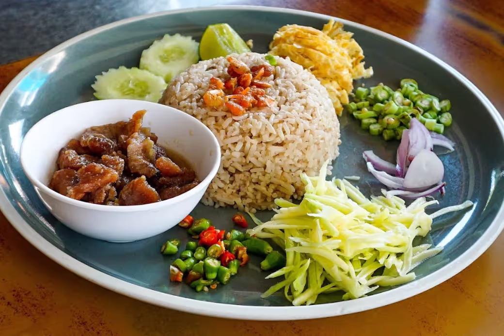 มุมข้าวคลุกกะปิ: ถ่ายภาพจานข้าวคลุกกะปิแบบจัดเต็ม เน้นสีสันที่สดใสของเครื่องเคียงต่างๆ และการจัดวางที่สวยงาม ได้ภาพที่ดู น่าทานและเป็นอาหารไทยแท้ๆ ค่ะ