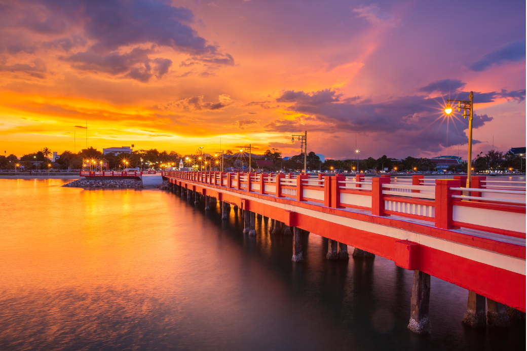 ในฐานะคนประจวบฯ โดยแท้ วันนี้จุ๊ขอพาเพื่อนๆ มาเดินเล่นชิลๆ สัมผัสบรรยากาศริมอ่าวที่สวยที่สุดของเราค่ะ สถานที่นั้นก็คือ "สะพานสราญวิถี" หรือที่นักท่องเที่ยวเรียกกันติดปากว่า "สะพานแดง" นั่นเองค่ะ นี่คือแลนด์มาร์คของเมืองสาวอ่าวที่เราภูมิใจนำเสนอเลยค่ะ