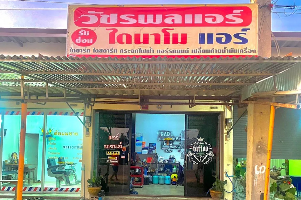 ทำเล: วัชรพลแอร์ ไดนาโม เป็นร้านที่ดูเป็นมืออาชีพและมีพื้นที่กว้างขวาง สำหรับการซ่อมรถค่ะ