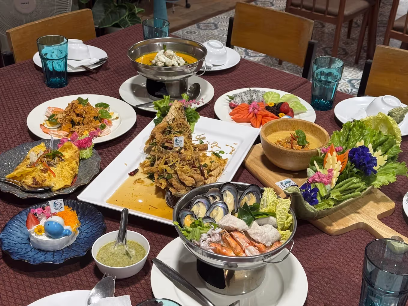 เมนูของที่นี่คือการนำเสนอความสดใหม่ในรสชาติที่จัดจ้านถึงใจสไตล์พื้นบ้าน ไม่ว่าจะเป็นปูม้าเนื้อหวานนึ่งที่แกะออกมาแล้วเนื้อยังเด้งสู้ฟัน กุ้งแชบ๊วยตัวโตที่ปรุงแบบไหนก็อร่อย หรือจะเป็นเมนูต้มยำที่รสชาติเข้มข้นถึงเครื่องแกง ทุกจานปรุงขึ้นด้วยความใส่ใจราวกับทำให้คนในครอบครัวทาน การได้นั่งทานอาหารทะเลท่ามกลางวิวป่าชายเลนและวิถีชีวิตชาวประมงที่พายเรือผ่านไปมา เป็นการกินที่ทำให้เราได้สัมผัสถึงที่มาของอาหารจริงๆ หากโชคดีในช่วงจังหวะที่เหมาะสม คุณอาจจะได้เห็นปลาตัวเล็กตัวน้อยกระโดดขึ้นเหนือน้ำให้ดูเป็นขวัญตา ความสุขที่บรูด้า เบย์ ซีฟู้ด จึงไม่ใช่แค่เรื่องของรสชาติที่ถูกปาก แต่คือการได้ซึมซับวิถีชีวิตที่เรียบง่ายและความสมบูรณ์ของท้องทะเลประจวบฯ ในทุกๆ คำที่ทานเข้าไป จนทำให้หลายคนต้องกลับมาเยือนซ้ำทุกครั้งที่มีโอกาส