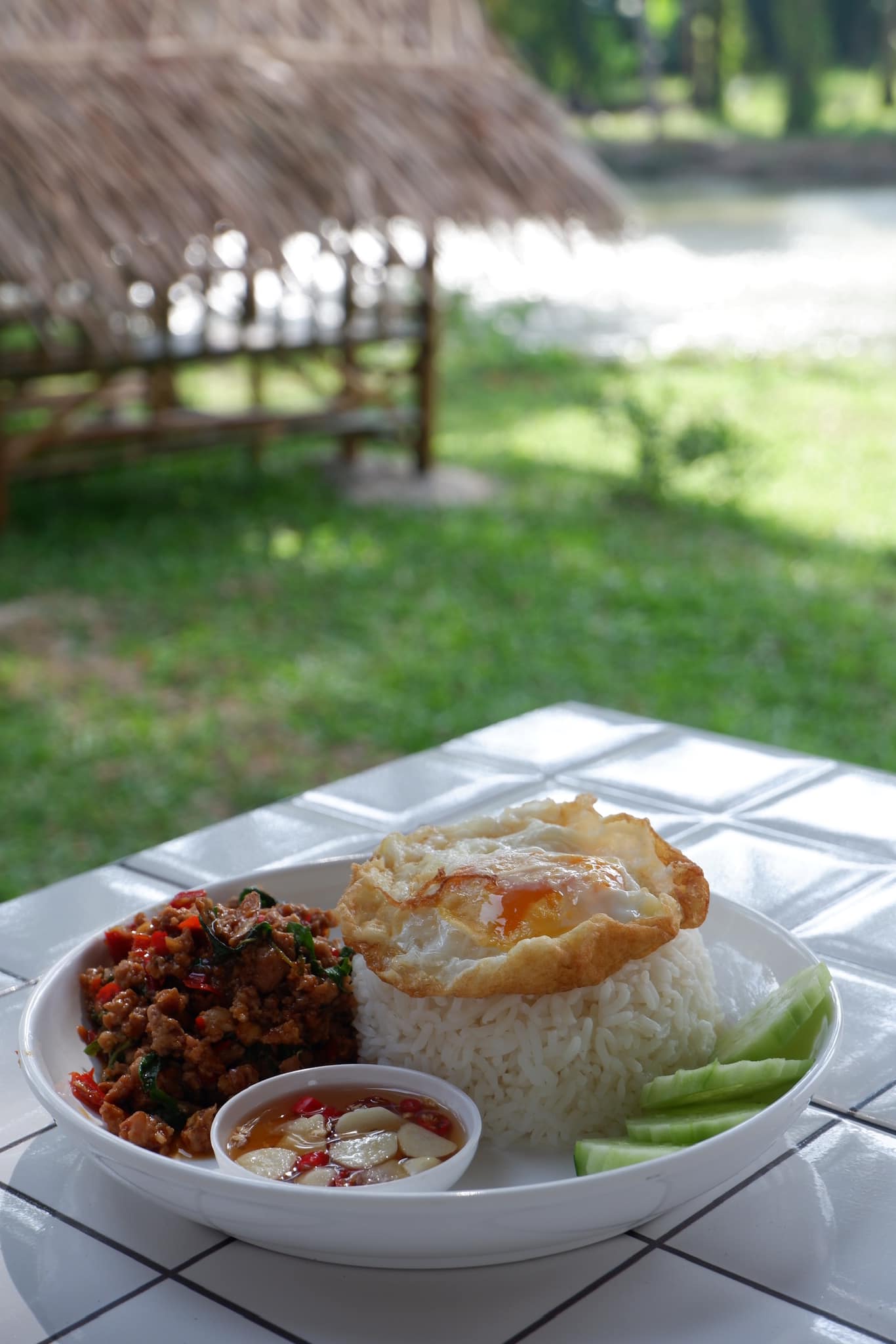 แต่ที่เซอร์ไพรส์กว่าบรรยากาศก็คือ อาหารตามสั่ง ของคุณย่าค่ะ! แม้จะเป็นรีสอร์ทเล็ก ๆ แต่ครัวที่นี่คือจัดจ้านไม่แพ้ร้านดังเลยนะ! เราสั่ง ส้มตำ มาแซ่บ ๆ รสชาติคือ เผ็ด เปรี้ยว เค็ม ครบรสแบบไม่ต้องขอพริกเพิ่มเลยค่ะ! กินอาหารรสจัดจ้านริมน้ำท่ามกลางธรรมชาติแบบนี้ มันช่างฟินอะไรเบอร์นั้น!