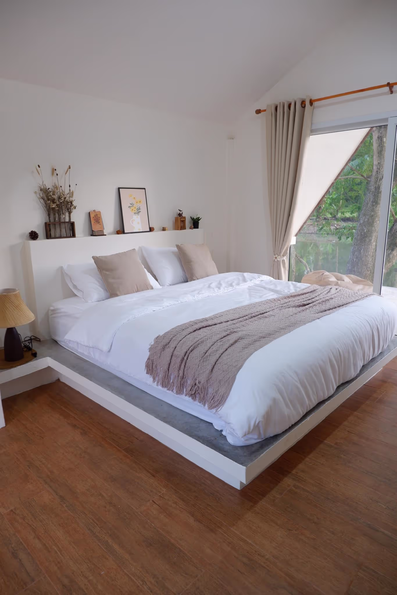 พอขับรถมาถึงก็สัมผัสได้ถึงความ สงบและเป็นส่วนตัว เลยค่ะ ตัวรีสอร์ทตั้งอยู่ริมน้ำ บรรยากาศร่มรื่นเต็มไปด้วยต้นไม้เขียว ๆ ทำให้รู้สึกเหมือนมาพักผ่อนในสวนสวย ๆ ของคุณย่าจริง ๆ เลย ห้องพักที่เราพักนั้น สะอาด มาก ๆ ค่ะ! เตียงนุ่มกำลังดี ผ้าหอม และทุกอย่างดูใหม่กิ๊กตามสไตล์ราคาโปรโมชั่นเปิดใหม่ที่ แค่ 900 บาทต่อคืน พักได้ 2 ท่าน เนี่ย ถือว่าคุ้มค่าเกินเบอร์ไปมาก!