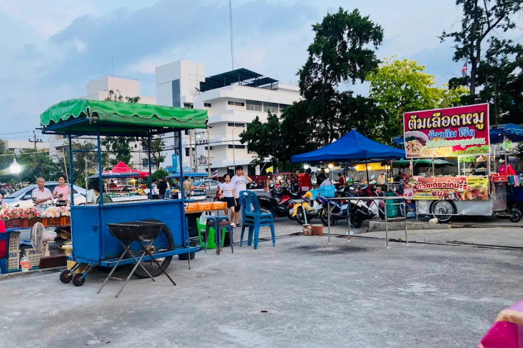 บรรยากาศของตลาดโต้รุ่งที่นี่จะเต็มไปด้วยชีวิตชีวา เป็นถนนที่เต็มไปด้วยแสงไฟจากร้านรวงต่าง ๆ ที่ตั้งเรียงรายกันอย่างหนาแน่น ถึงแม้จะไม่ใหญ่โตโอ่อ่าเท่าตลาดใหญ่ ๆ ในเมืองท่องเที่ยวอื่น แต่ที่นี่มีกลิ่นอายของ ความเป็นกันเอง และ ความเป็นเมืองท้องถิ่น ที่ยังคงความเรียบง่ายและน่าเดินเล่นสุด ๆ เราจะได้ยินเสียงพ่อค้าแม่ขายเชิญชวนลูกค้า เสียงพูดคุยของคนในพื้นที่ และนักท่องเที่ยวที่แวะเวียนมาหาของอร่อย ทำให้รู้สึกได้ถึงความคึกคักที่เกิดขึ้นตั้งแต่หัวค่ำไปจนถึงดึก