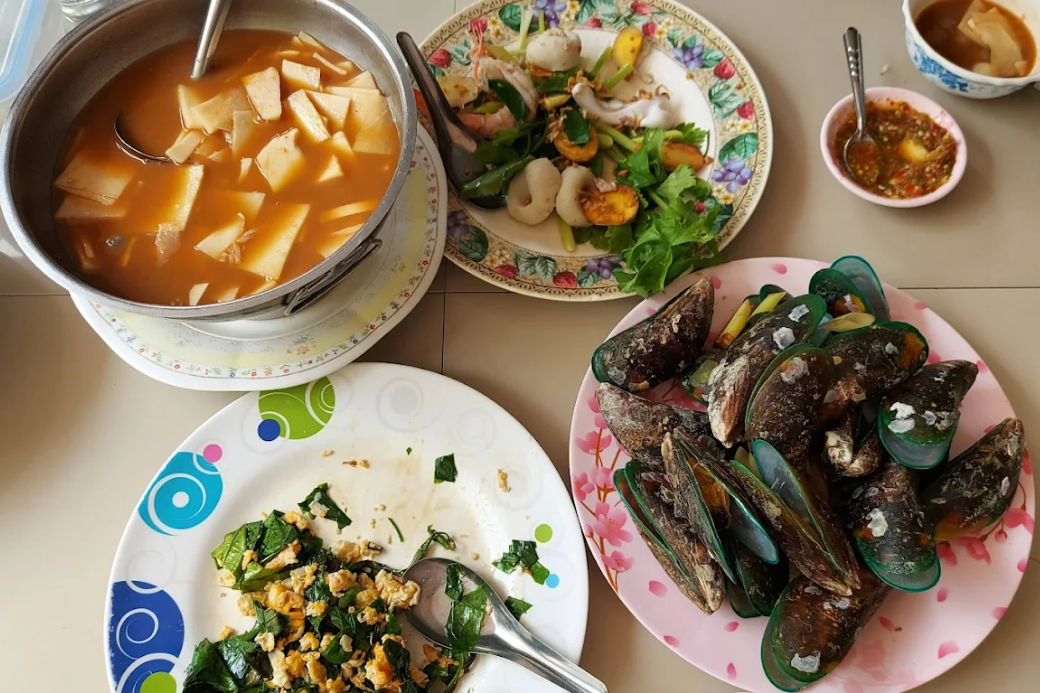 📍 ร้านอาหารทะเลรับลม, อ่าวประจวบคีรีขันธ์ ⭐ เมนูห้ามพลาด: แกงส้มยอดมะพร้าว, ปลาอินทรีทอดน้ำปลา, ใบเหลียงผัดไข่ 🌶️ รสชาติ: จัดจ้านสไตล์อาหารใต้/พื้นบ้าน 🌊 บรรยากาศ: เปิดโล่ง, รับลมทะเลเต็มๆ