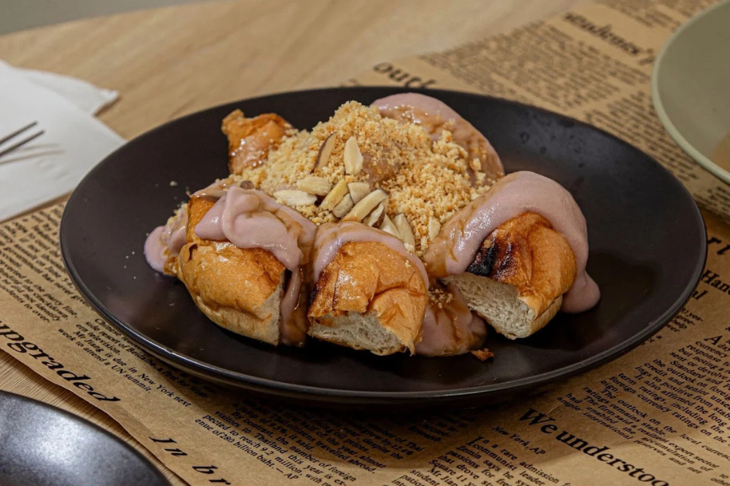 วันนี้เราเริ่มต้นที่เมนูเครื่องดื่ม ซึ่งแน่นอนว่าต้องสั่ง ชาไทยเย็น รสชาติที่ได้คือความเข้มข้น หวานมัน กลมกล่อม ถูกใจคนชอบ ชาใต้ แท้ ๆ เลยค่ะ ไม่ผิดหวังเลยจริง ๆ ส่วนขนมปังปิ้ง เราเลือกเมนูที่สะดุดตาอย่าง ขนมปังปิ้งซอสเผือก ซึ่งเป็นอีกหนึ่งเมนูที่ทำได้ดีมาก ๆ ซอสเผือกมีความละมุน หอมกลิ่นเผือกแบบธรรมชาติ และที่เด็ดคือทางร้านโรย เม็ดมะม่วงหิมพานต์ ลงบนหน้าซอสเผือกด้วย ทำให้ทุกคำที่กัดเข้าไปมีความกรุบกรอบเพิ่มขึ้นมา แถมยังได้ความมันของถั่วมาตัดกับความหวานของซอสได้อย่างลงตัว เป็นการผสมผสานรสชาติและเท็กซ์เจอร์ที่ลงตัวมากจริง ๆ ค่ะ