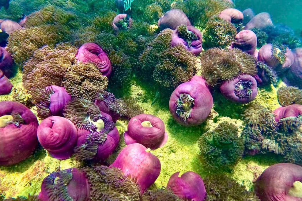 พอตื่นมาเต็มตาอีกครั้ง ก็ต้องไปเติมกาแฟที่คาเฟ่อุทยานฯ อีกรอบ วันนี้กิจกรรมของเราคือการผจญภัยโลกใต้น้ำ เราไปติดต่อ ทริปดำน้ำดูปะการัง ที่เกาะจานและเกาะท้ายทรีย์ (คนละ 600 บาท) นั่งเรือแค่ 15-20 นาทีก็ถึงเกาะแล้ว เจ้าหน้าที่มีอุปกรณ์ดำน้ำและคอยดูแลความปลอดภัยตลอดทริป แม้จะขึ้นเกาะไม่ได้ แต่โลกใต้ทะเลคือสวรรค์เลยค่ะ ปะการังโขด ปะการังเขากวาง และ ดอกไม้ทะเล ที่นี่เยอะและสวยงามสมบูรณ์มาก เราใช้เวลาชื่นชมความงามใต้น้ำกว่า 2 ชั่วโมงเต็มๆ