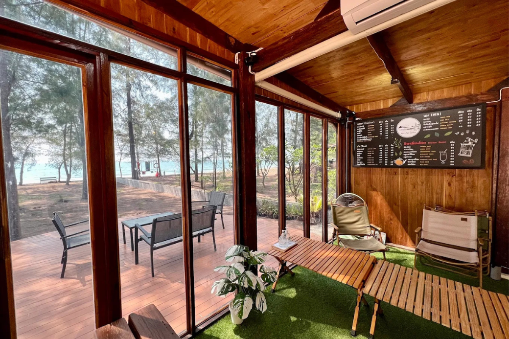 บ่ายแก่ๆ ก็ขอเติมพลังด้วยคาเฟอีน ที่นี่มีคาเฟ่เล็กๆ น่ารัก เป็นอาคารไม้ริมทะเล เราสั่ง มอคค่าเย็น กับ ขนมปังปิ้งสังขยา มานั่งทานที่ระเบียง พลางมองวิวทะเลสวยๆ พลังงานก็กลับมาเต็มเปี่ยมอีกครั้ง พออิ่มแล้วก็เดินเล่นริมหาด ชายหาดที่นี่ขาวสะอาดมากค่ะ แต่ถ้าเดินไปตามโขดหินต้องระวังหน่อยนะคะ เพราะเป็นที่อยู่ของหอยแมลงภู่และหอยแครง อาจจะบาดเท้าได้