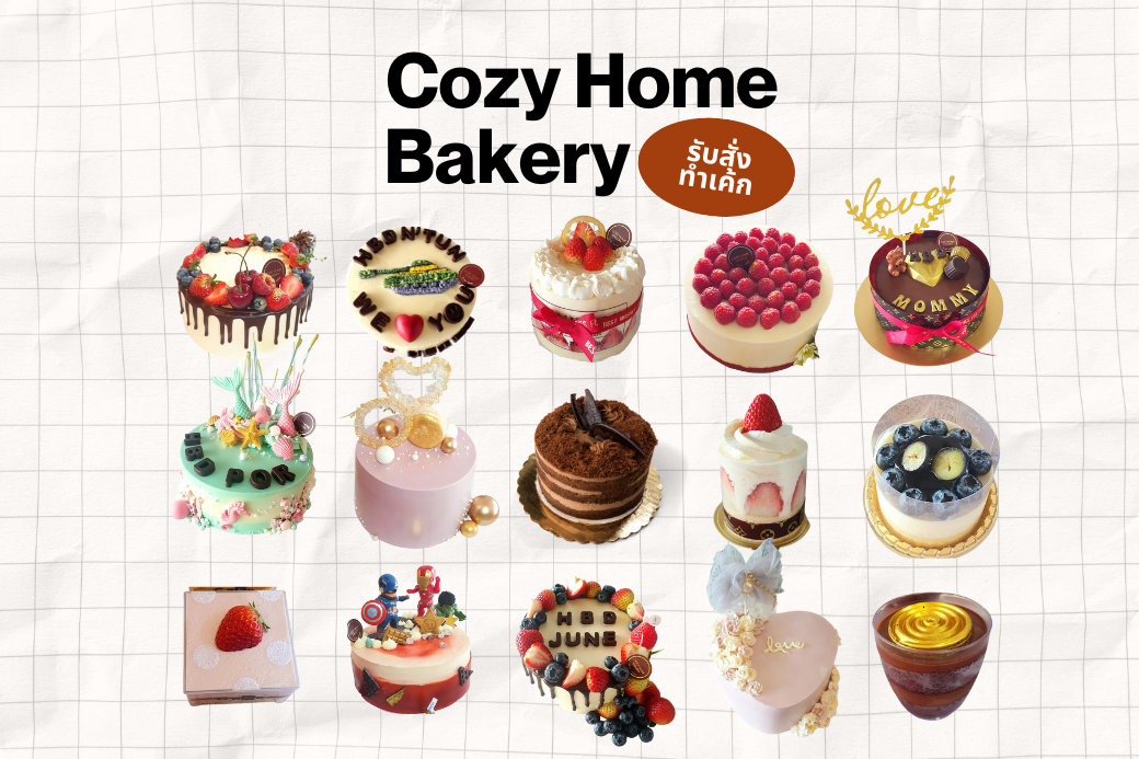 👉 อัพเดตพิเศษจาก Cozy Home Bakery นอกจากเค้กชิ้นอร่อยๆ ในตู้แล้ว Cozy Home Bakery ยัง รับทำเค้กวันเกิด และเค้กในโอกาสพิเศษต่างๆ ด้วยนะคะ!