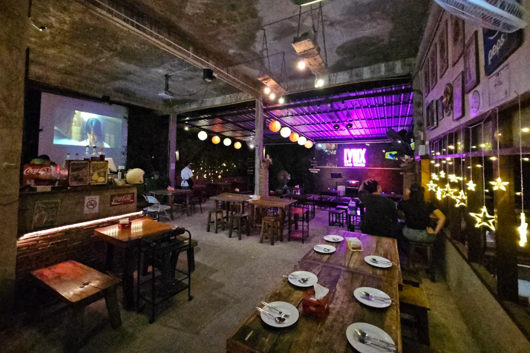 มุมหน้าร้าน/ป้ายไฟ: ถ่ายภาพหน้าร้านที่มีแสงไฟสว่างๆ หรือป้ายร้าน "LYNX Prachuap Bar & Restaurant" เพื่อสื่อถึงการเป็นจุดเช็คอินยามค่ำคืน