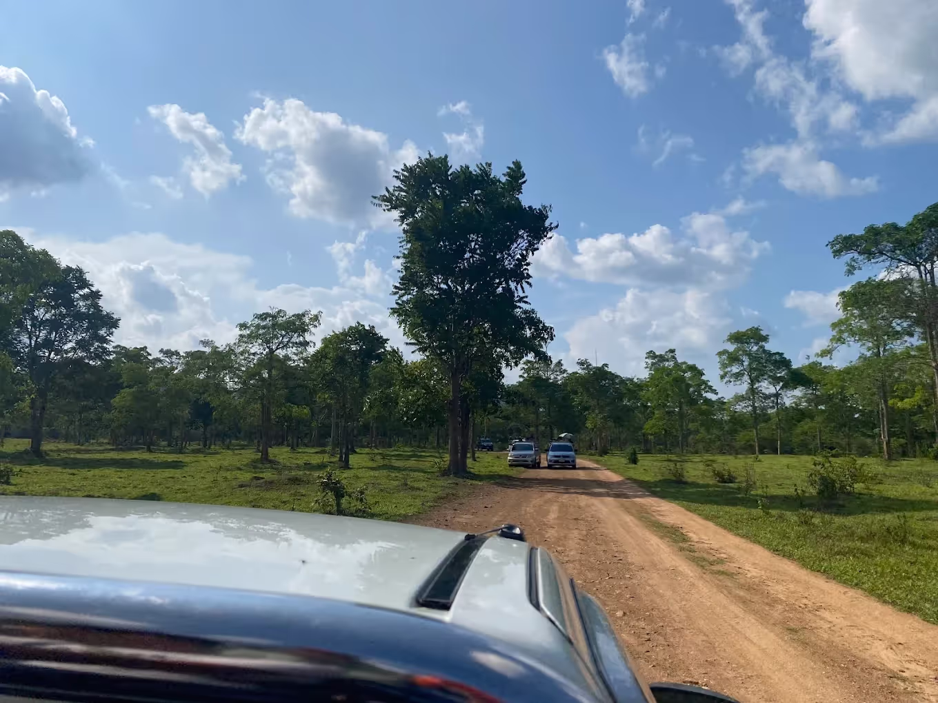 รถเคลื่อนตัวช้า ๆ เข้าไปตามทางดินลูกรังที่ลึกเข้าไปในป่า เสียงเครื่องยนต์คือเบาที่สุดเท่าที่ทำได้ (คือเน้นความเงียบแบบสุด ๆ) เรามีพี่เจ้าหน้าที่ไกด์ผู้รอบรู้ประจำรถ คอยชี้เป้าและเล่าเรื่องป่าตลอดทาง สายตาฉันคือไม่ยอมพลาดแม้แต่วินาทีเดียว เพราะทุ่งหญ้ากับป่าที่นี่มันสวยแบบภาพวาดจริง ๆ