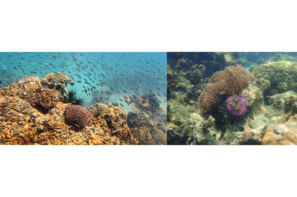 พอถึงจุดดำน้ำแรกที่ อ่าวมุก ทันทีที่หน้ากากแตะผิวน้ำ... โอ้โห! เหมือนหลุดเข้าไปในโลกอีกใบเลยค่ะ น้ำทะเลใสแจ๋ว จนมองเห็นพื้นทราย และสิ่งที่ทำให้ร้องว้าวคือ แนวปะการังน้ำตื้น ที่สมบูรณ์มาก ๆ มีทั้งปะการังเขากวาง ปะการังสมอง และไฮไลต์คือ ดอกไม้ทะเลสีม่วง ที่แกว่งไกวอยู่ใต้น้ำ