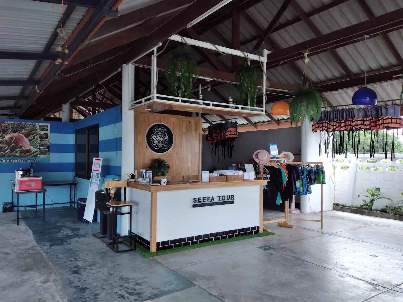 เรามาถึงออฟฟิศของสีฟ้าทัวร์ (ซึ่งอยู่ใกล้กับบางสะพานน้อย) เพื่อรับอุปกรณ์และฟังบรีฟจากทีมงาน ขอบอกเลยว่าทีมงานดูแลดีมากค่ะ ตั้งแต่คนไม่เคยดำน้ำอย่างเราไปจนถึงคนที่คล่องแล้ว ทำให้รู้สึกอุ่นใจตั้งแต่อยู่บนฝั่งเลยทีเดียว