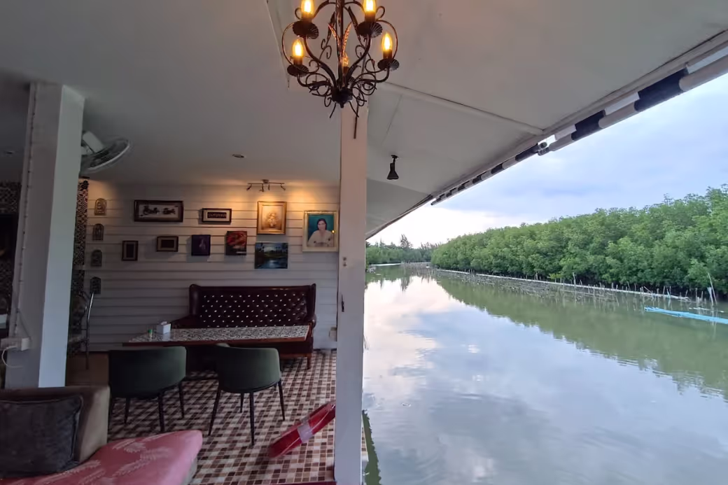 🍹 ไฮไลต์: วิวริมน้ำร่มรื่น เครื่องดื่มเย็นชื่นใจ บรรยากาศเงียบสงบ