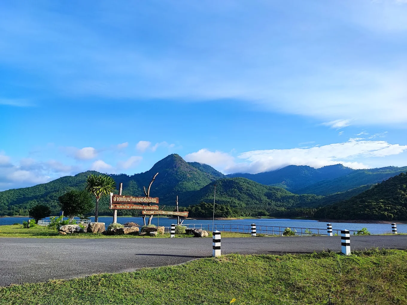 พอขับรถมาถึงก็สัมผัสได้ถึงความสงบและร่มรื่นทันทีเลยค่ะ วิวตรงหน้าคืออ่างเก็บน้ำขนาดใหญ่ที่โอบล้อมด้วยทิวเขาที่ สลับซับซ้อนกันเป็นฉากหลัง ผืนน้ำนิ่ง ๆ สะท้อนเงาของท้องฟ้าและภูเขา ทำให้ภาพดูสวยงามเหมือนภาพวาดเลยค่ะ แถมที่นี่สมชื่อ "คลองช่องลม" จริง ๆ เพราะ ลมพัดเย็นสบายตลอดเวลา เหมือนมีแอร์ธรรมชาติเปิดให้เราอยู่ข้าง ๆ ตลอดวันเลยค่ะ