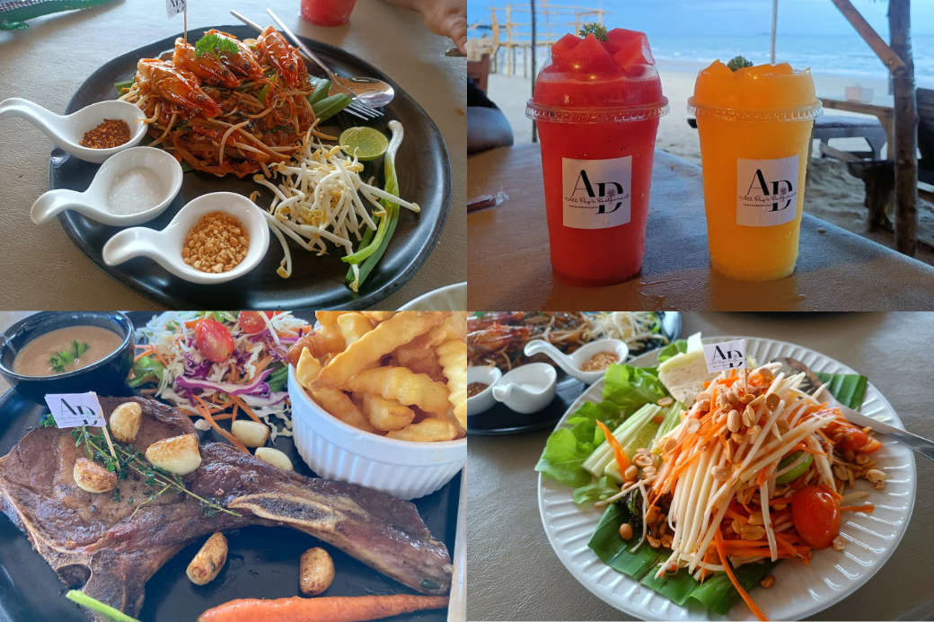 วันนั้นฉันกับเพื่อนจัดหนักทั้งอาหารไทยและฝรั่งเลยค่ะ ส้มตำที่สั่งมารสชาติคือแซ่บถึงเครื่องแบบไม่ต้องสงสัย ส่วนสเต๊กก็คือเนื้อดีงาม ชิ้นใหญ่สมราคามาก ๆ ทำรสชาติได้อร่อยกลมกล่อมทุกจานจริง ๆ ไม่ได้มีดีแค่เป็นร้านวิวสวยอย่างเดียว แต่รสชาติก็คือยืนหนึ่งไม่แพ้ร้านอาหารดัง ๆ เลยค่ะ การได้นั่งจิบเครื่องดื่มเย็น ๆ ทานอาหารอร่อย ๆ ไปพร้อมกับฟังเสียงคลื่นและดูวิวทะเลสวย ๆ คือการพักผ่อนที่สมบูรณ์แบบที่สุดแล้วค่ะ