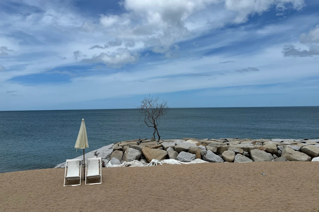 แค่ก้าวเท้าเข้าไปก็คือรู้สึกเหมือนหลุดไปอยู่คาเฟ่แถวปูซานหรือคังนึงเลยค่ะ! ร้านตกแต่งด้วยโทนสีขาวคลีน ๆ มีความมินิมอลแบบเกาหลีเกาใจจริง ๆ แต่ที่ดีงามกว่าคือโลเคชั่นที่ตั้งอยู่ ติดชายทะเลทับสะแก เลย! คือมันเป็นฟีลลิ่งที่อบอุ่นแบบโฮมมี่ แต่ก็มีวิวทะเลสุดลูกหูลูกตาที่ช่วยให้ใจเราสงบลงทันที