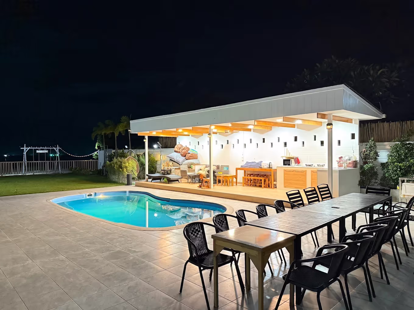 บรรยากาศในช่วงเย็นที่ Khuun Pool Villa จะยิ่งทวีเสน่ห์มากขึ้น เมื่อแสงไฟสีส้มละมุนเริ่มสว่างขึ้นรอบสระว่ายน้ำ สร้างบรรยากาศที่ทั้งชิลและโรแมนติกในเวลาเดียวกัน การได้นั่งทานอาหารรสเลิศท่ามกลางเสียงหัวเราะของคนที่รัก คือความสุขแบบง่ายๆ ที่ที่นี่ตั้งใจมอบให้สมกับชื่อ "คุณ" เพราะที่พักแห่งนี้ถูกสร้างขึ้นมาเพื่อให้เป็นพื้นที่สำหรับคุณโดยเฉพาะ ไม่ว่าจะเป็นการมาชาร์จพลังในวันหยุดสั้นๆ หรือการจัดทริปฉลองในโอกาสพิเศษ "คุณ พูลวิลล่า" จะทำให้คุณกลับไปพร้อมความทรงจำที่น่าประทับใจและความรู้สึกที่ว่า การพักผ่อนที่ดีที่สุดคือการได้อยู่ท่ามกลางบรรยากาศที่อบอุ่นเหมือนบ้านแบบนี้นี่เอง