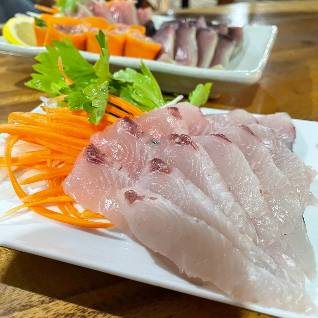 แต่หัวใจสำคัญของภารกิจนี้คือเมนูที่ต้องใช้ความพยายามในการเข้าถึง นั่นคือ ซาชิมิปลาไทย ค่ะ! พนักงานเล่าให้ฟังว่าเมนูนี้ไม่ได้มีทุกวัน และถ้าอยากทานแบบจัดเต็ม ต้องโทรมาสั่งจองล่วงหน้า 2-3 วันเลยนะคะ! เพราะทางร้านจะรอปลาสด ๆ ที่มาจากเรือประมงพื้นบ้านโดยตรง เพื่อให้ได้ปลาที่สดที่สุดสำหรับทำซาชิมิ