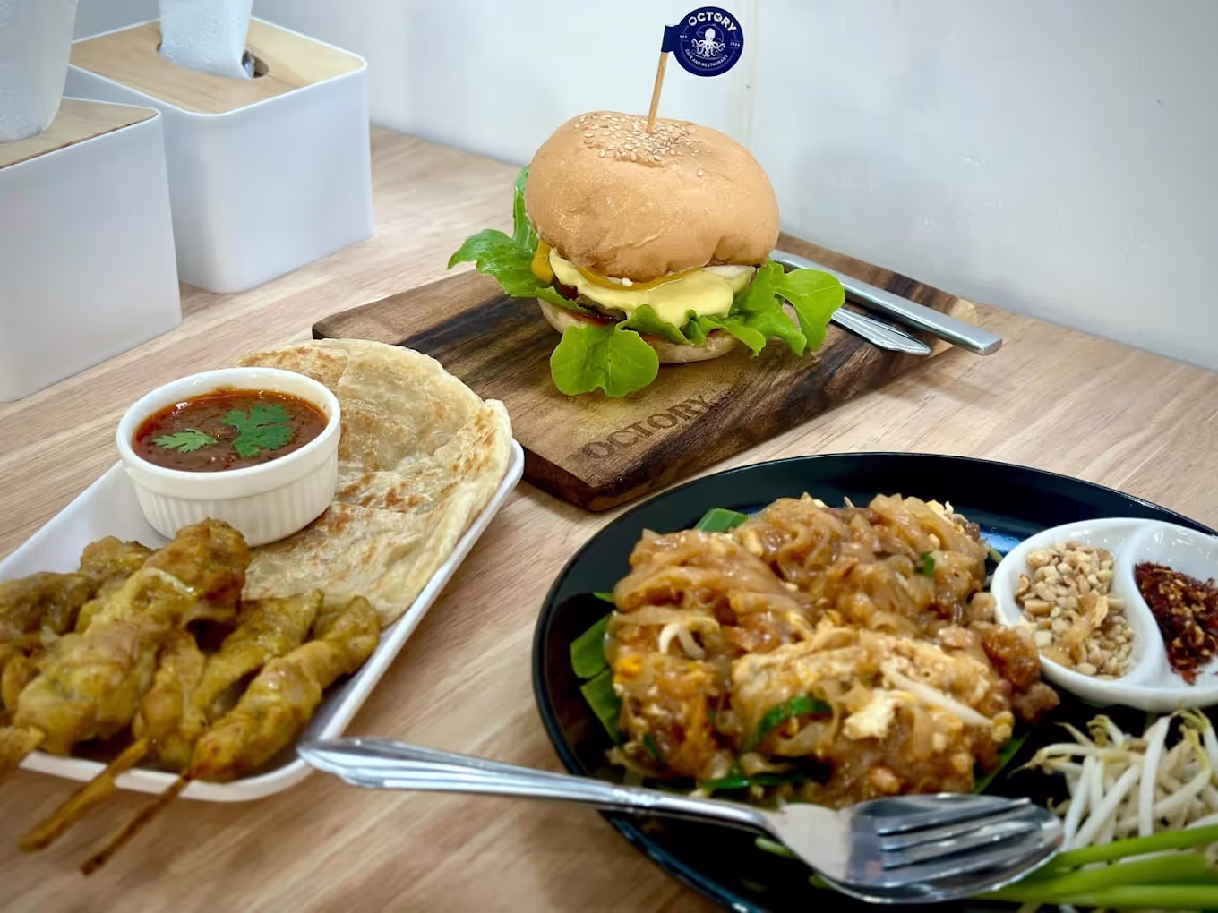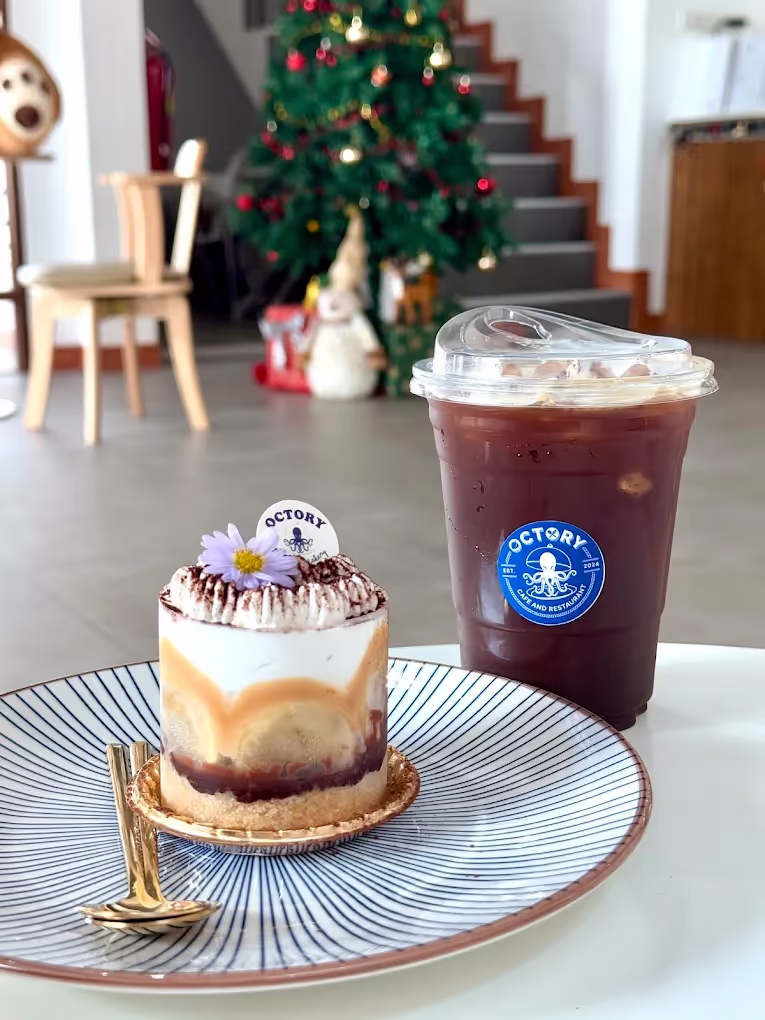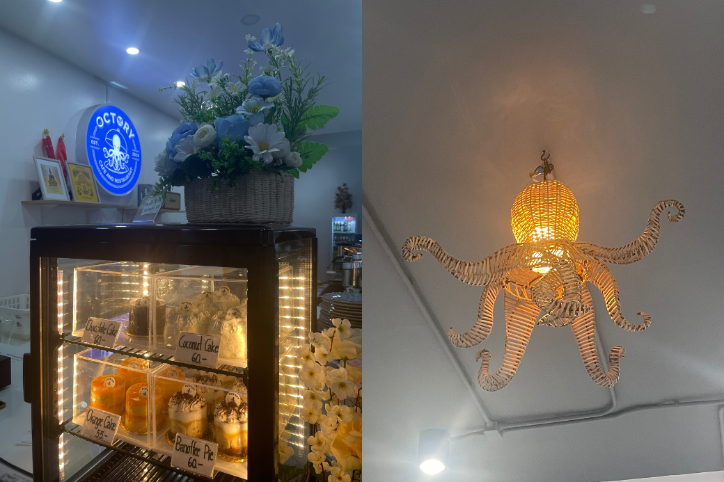 การเดินทางไกลสู่ภาคใต้ครั้งนั้น ทำให้ฉันมองหาโอเอซิสริมทางเพื่อแวะพักเติมพลัง และทันทีที่รถเลี้ยวเข้าสู่ชายทะเลห้วยยาง จังหวัดประจวบคีรีขันธ์ ก็ถูกสะกดด้วยเสน่ห์ของ OCTORY CAFE & RESTAURANT ซึ่งคอนเซปต์ของร้านนั้นน่ารักน่าชังตั้งแต่แรกเห็น ด้วยโลโก้ "น้องปลาหมึก" สุดกวนที่นำทางเราไปสู่พื้นที่ที่เต็มไปด้วยความอบอุ่นของงานดีไซน์ สไตล์ร้านมีความมินิมอลสะอาดตา แต่สิ่งที่แฝงกิมมิกสนุก ๆ คือ โคมไฟหวายสานรูปปลาหมึก ที่แขวนไหวไปตามลมทะเล สิ่งเหล่านี้ผสมผสานกันอย่างลงตัวกับบรรยากาศของท้องทะเลจริง ๆ