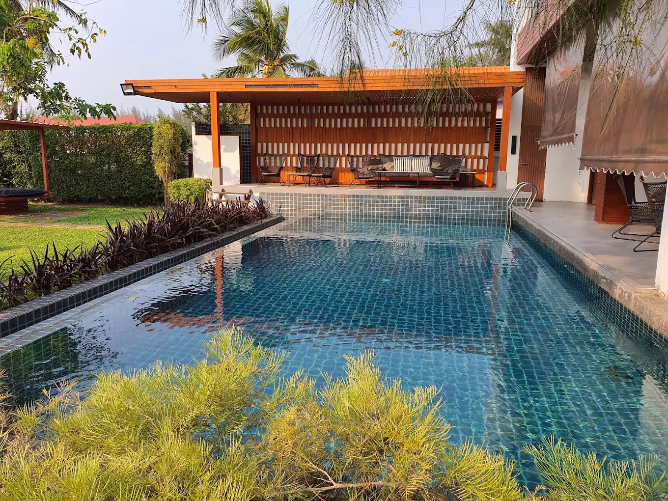 ส่วนพื้นที่ส่วนกลางของรีสอร์ทก็ถูกออกแบบมาเพื่อการพักผ่อนอย่างแท้จริงค่ะ ถึงแม้จะไม่ได้ติดทะเลโดยตรง แต่เขาก็มี สระว่ายน้ำ ที่รายล้อมไปด้วยต้นไม้เขียวขจี ซึ่งช่วยสร้างบรรยากาศที่เงียบสงบและเป็นส่วนตัวมาก ๆ เลยค่ะ เป็นจุดที่เหมาะมากสำหรับการลงไปแช่น้ำคลายร้อนหลังเหนื่อยล้าจากการเดินทางหรือการออกไปเที่ยวมาทั้งวัน นอกจากนี้ ทางรีสอร์ทยังมีบริการ จักรยานให้ยืม ซึ่งถือเป็นสิ่งอำนวยความสะดวกที่ดีมาก ๆ เพราะคลองวาฬเป็นเมืองเล็ก ๆ ที่เหมาะกับการปั่นจักรยานสำรวจวิถีชีวิตผู้คนและชมวิวรอบ ๆ เป็นอย่างยิ่งค่ะ